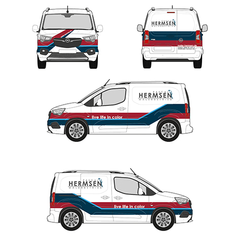 Right from the start Puro Design had the pleasure of bringing this creativity and passion of the painting business into a look suitable for Pascal Hermsen. From the design of the logo to the office equipment to the vehicle lettering.